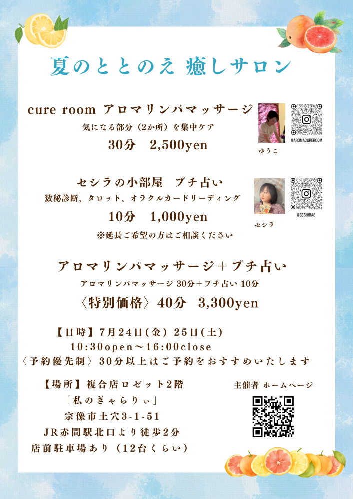 夏のととのえ癒しサロン🍊